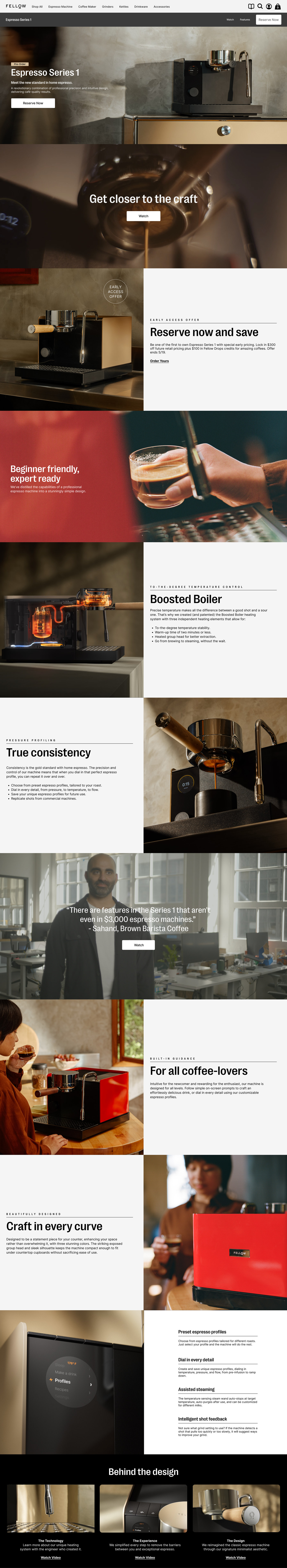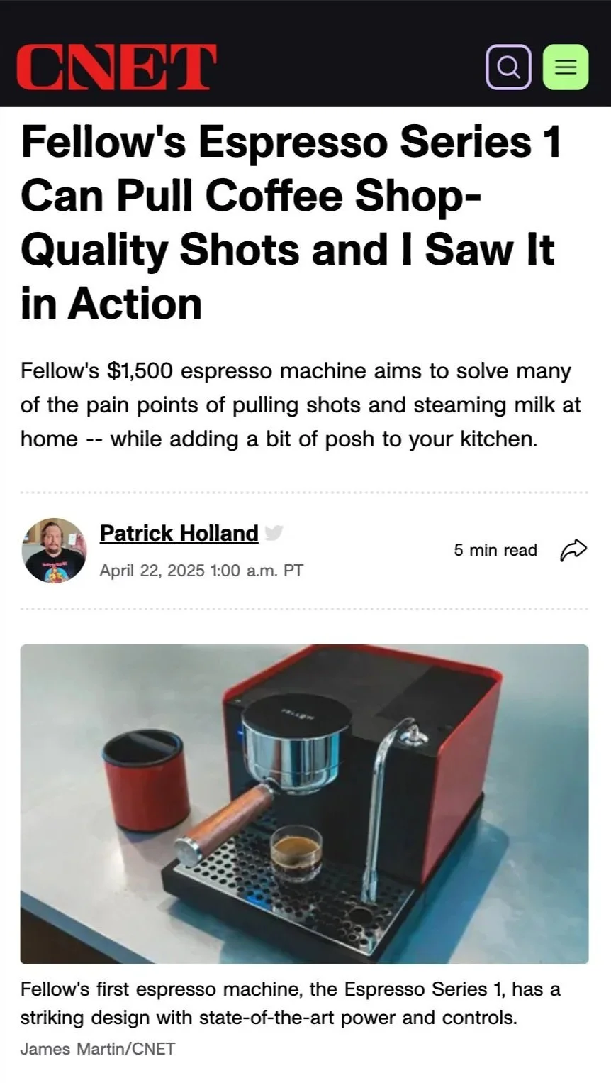 Series 1 needed to bridge three audiences simultaneously: existing Fellow customers ready to expand beyond manual brewing, aspiring home baristas upgrading from entry-level machines, and design-conscious buyers seeking both performance and aesthetic excellence.